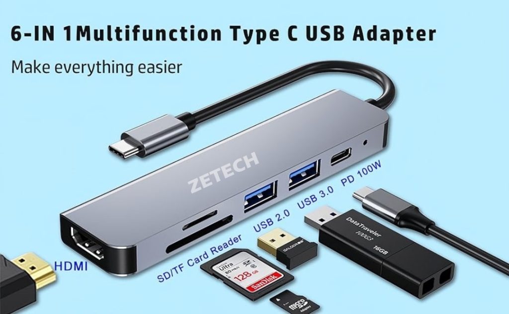 6 in 1 USB C Hub with 4K HDMI, USB C SD/TF Card Reader,100W PD, USB 3.0 Extender