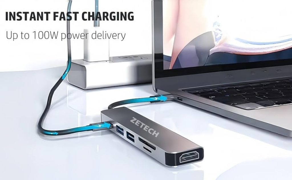 The USB C Docking Station supports a massive 100W pass-through charging, ideal for your laptop or other USB C devices in an office or meeting room