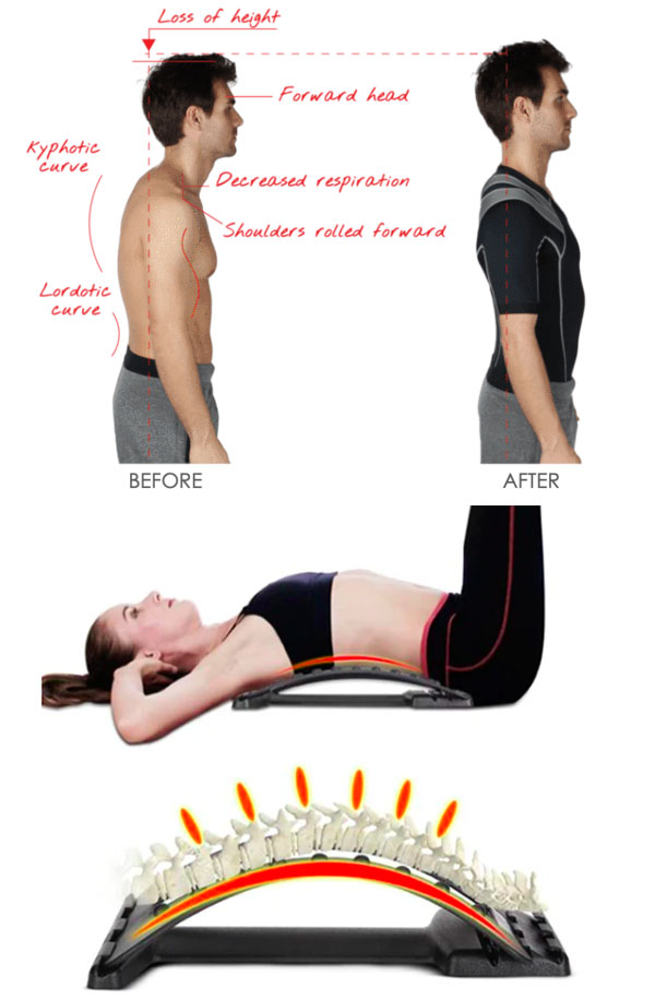 A single session provides instant relief, and daily use contributes to a healthier posture and alignment of the spine.