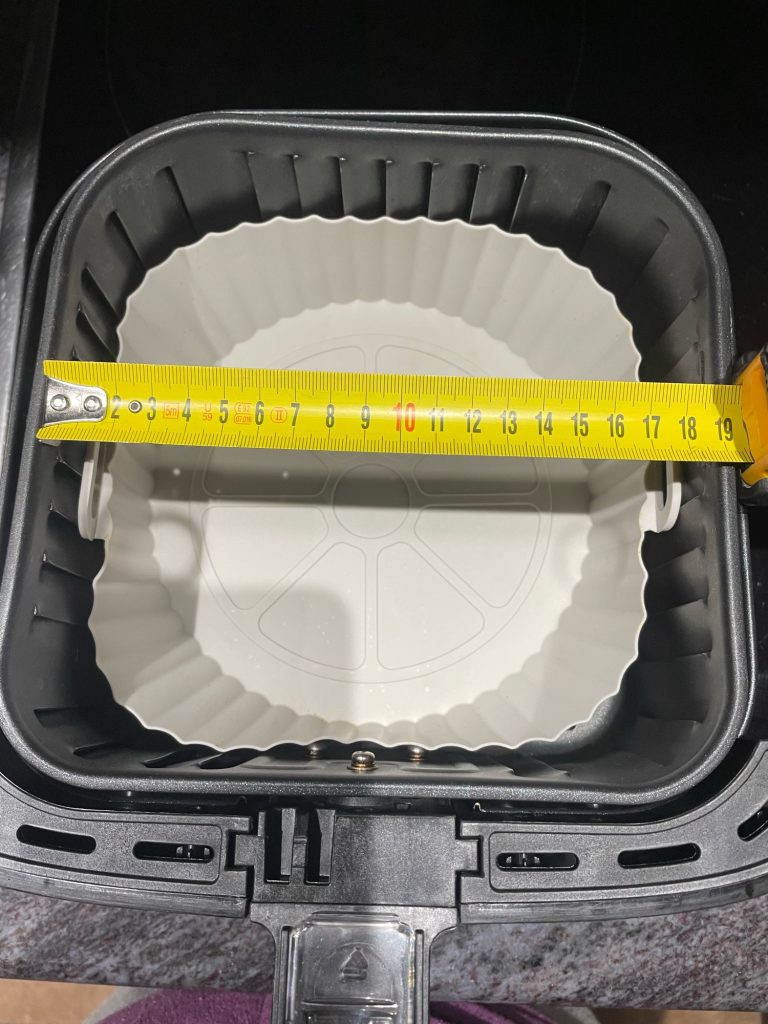Fits perfectly in my air fryer! Just wish it came in other colors.