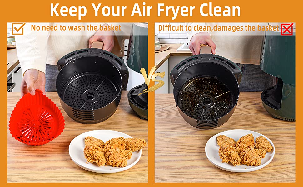 As a great replacement for disposable parchment liners, our reusable air fryer silicone pot is made of 100% pure silicone. Leak-proof, non-stick, non-toxic.