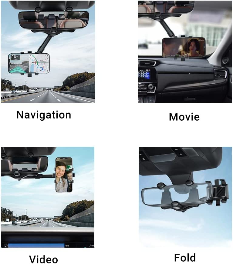 Improved version Firmly Locked Rearview mirror phone holder that adopts a 360°rotating structure for Phones, Maps, GPS and Handsfree drive. 360 Holder allows you Switch between Horizontal and Vertical Screens at will