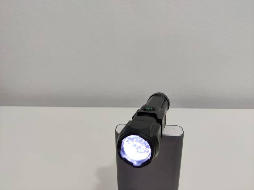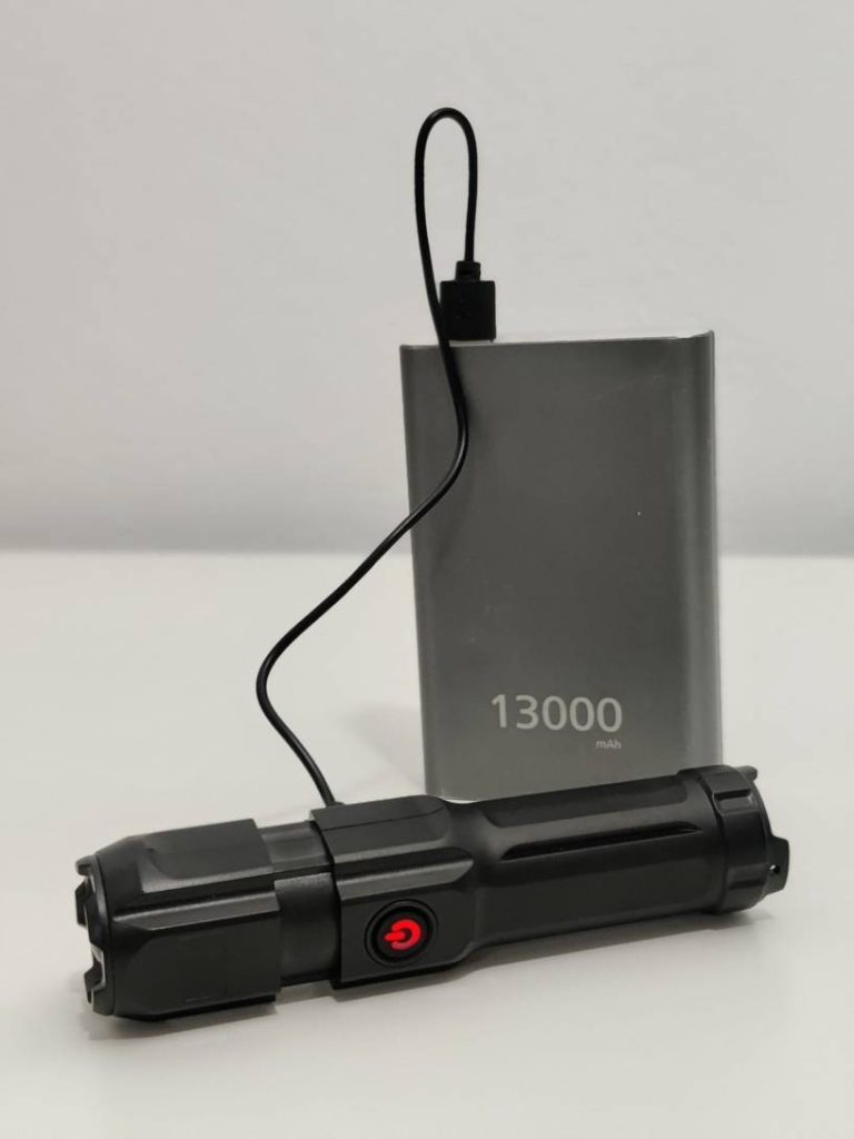 The flashlight is bright enough, there was a booklet, a short yuzby cord, a tripod handle, although the charge indicator shows that the battery is on its breath, it’s ok