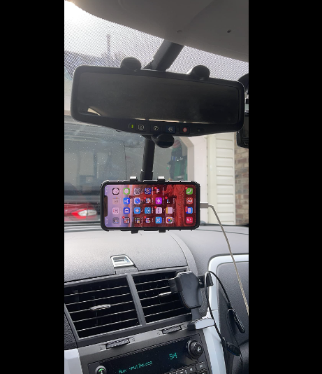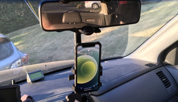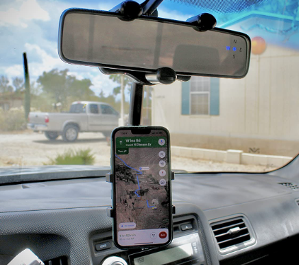 Install the car cell phone holder on the rearview mirror and say goodbye to the dangerous habit of looking down at the navigation.