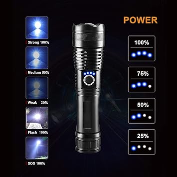 I recently purchased this USB chargeable flashlight and have been extremely pleased with its performance. From the moment I opened the package, I could tell that this was a well-built product. The flashlight itself is thick and feels a bit heavy but is small enough for me, making it easy to carry around in my pocket or backpack. It’s also very durable – I’ve dropped it a few times and it has held up well.