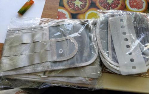 There are a lot of things in the package, 3 different pads, one with magnets, one with pockets where you can put in an ice pack, then there is a ses of metal support plates. And metal strips Good deal.