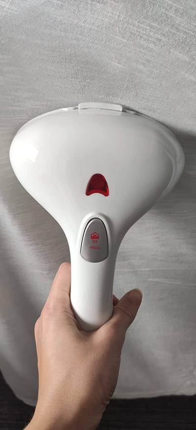 this steamer, works like a champ! This steamer does its job, no worries about burning yourself, I feel completely safe using it. It is slightly heavy and my arms do get tired after awhile, but still a good buy!