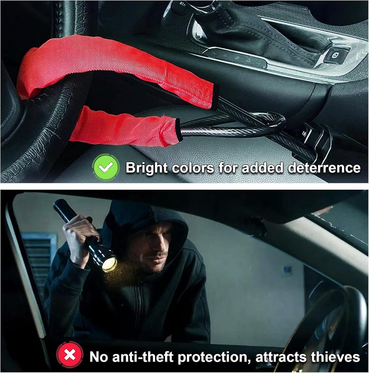 Bright, impossible-to-miss design. Thieves see it from outside and immediately move to the next car. You don't even give them a chance to try.