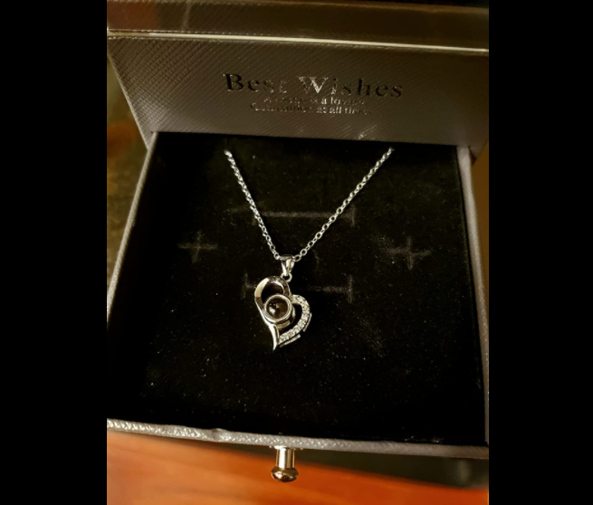 This was absolutely beautiful. Inside the heart pendant it says I LOVE YOU in a thousand languages! Iām so happy with the purchase! Will get more